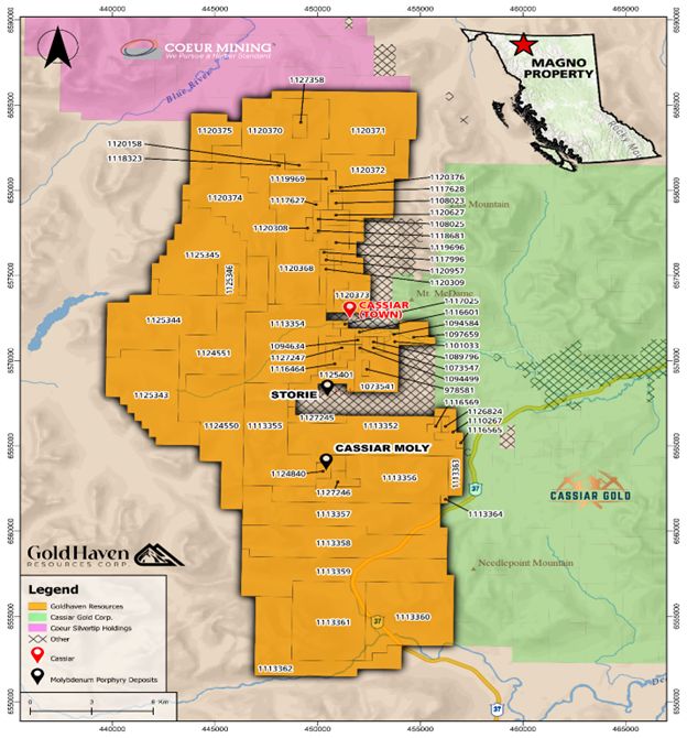 VANCOUVER, British Columbia, March 24, 2026 (GLOBE NEWSWIRE) -- GoldHaven Resources Corp. ("GoldHaven" or the "Company") (CSE: GOH) (OTCQB: GHVNF) (FSE: 4QS) has completed a review of historical exploration data from three recently acquired mineral claims within its Magno Project in the Cassiar District of northern British Columbia. The claims, which expanded the property to over 37,200 hectares, host three historically explored mineral occurrences — a tungsten-molybdenum skarn at Lamb Mountain, an intrusion-related molybdenum system at Cassiar Moly, and a polymetallic volcanogenic massive sulphide (VMS) occurrence at Lang Creek — collectively demonstrating multiple mineralization styles within the broader Magno property.