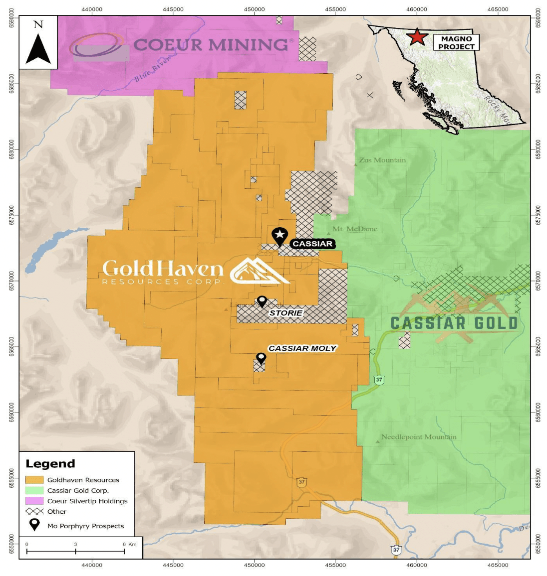GoldHaven Resources Corp. is a Canadian junior exploration Company focused on acquiring and exploring highly prospective land packages in North and South America. The Company’s projects include (i) the flagship Magno Project, a district-scale polymetallic property adjacent to the historic Cassiar mining district in British Columbia; (ii) the Three Guardsman Project, which exhibits significant potential for copper and gold-skarn mineralization; (iii) the Copeçal Gold Project, a drill-ready gold project located in Mato Grosso, Brazil with a 6km strike of anomalous gold in soil samples; and (iv) three critical mineral projects with extensive tenement packages totalling 123,900 hectares: Bahia South, Bahia North and Igautu projects located in Brazil.